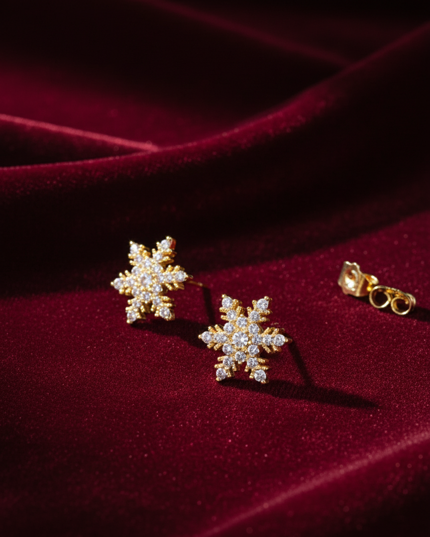 These gold-plated snowfall-shaped tops feature delicately set shimmering zircon stones that catch the light with every move. Their snowflake-inspired design adds a touch of elegance and uniqueness, while the warm golden finish makes them perfect for both festive occasions and everyday glam.